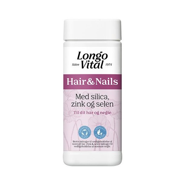 Longo Vital Hair & Nails er specielt sammensat af vitaminer, mineraler, ølgær samt agerpadderok, der indeholder silica. Biotin bidrager til at vedligeholde et normalt hår. Kobber bidrager til en normal pigmentering af håret. Selen og zink bidrager til at vedligeholde normale negle.